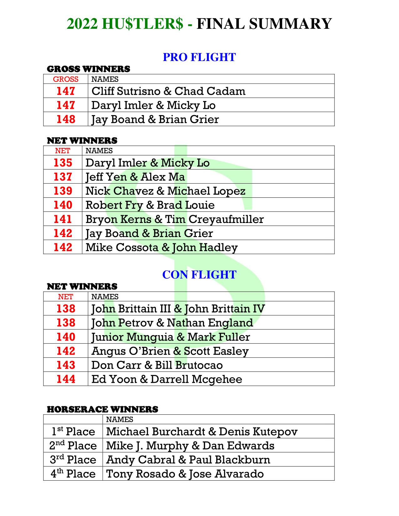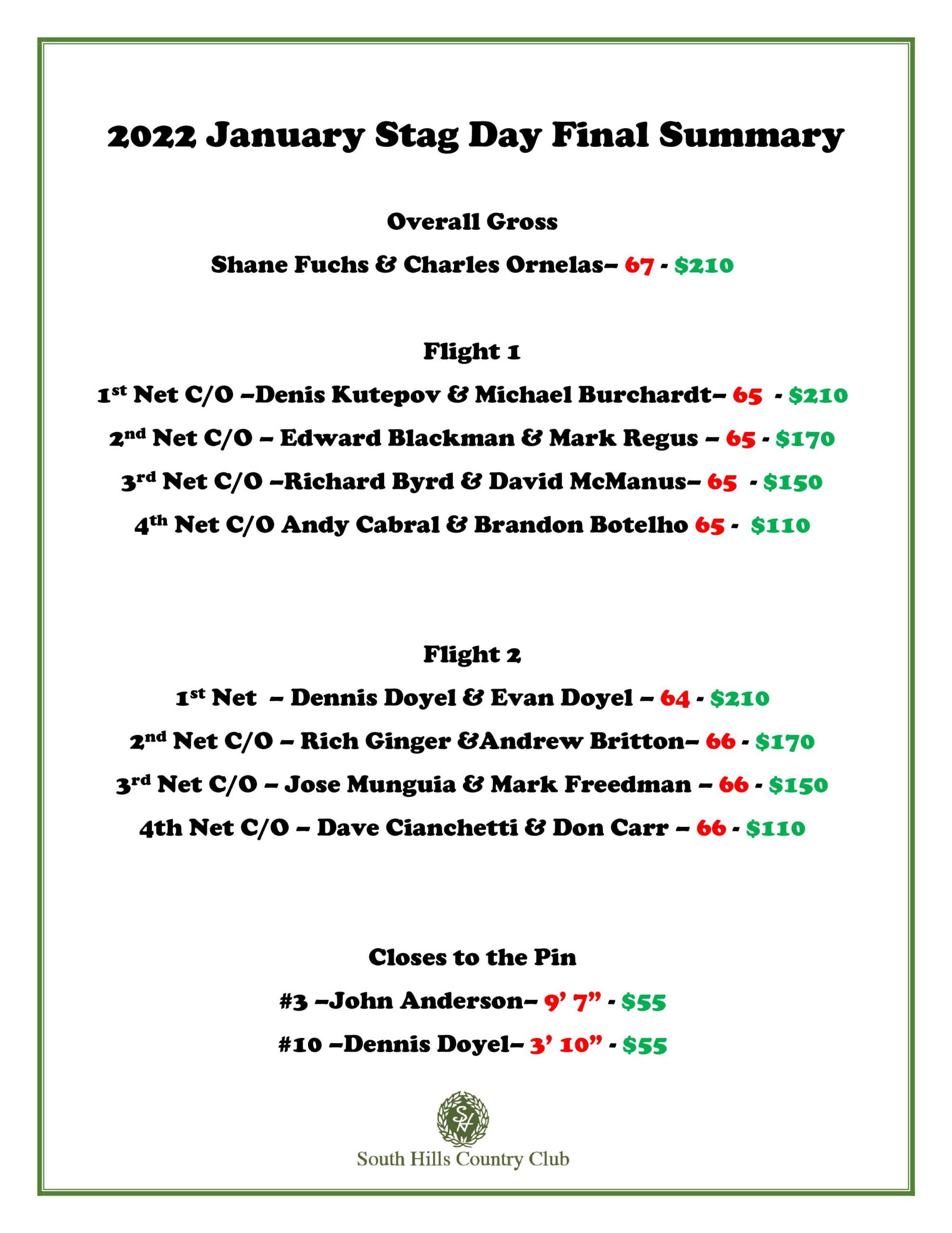 Golf Tournament Results South Hills Country Club